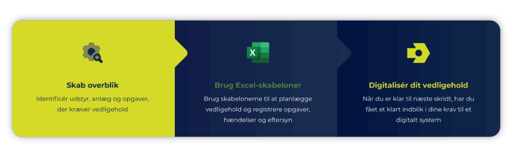 For at hjælpe dig i gang med at strukturere dit vedligehold, har vi lavet gratis Excel skabeloner til vedligeholdsplan og tjeklister, som du kan tage i brug med det samme.